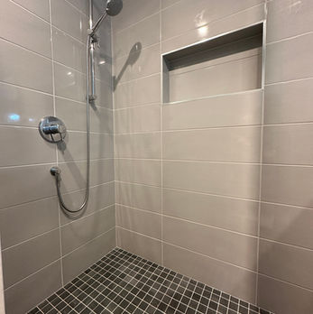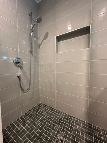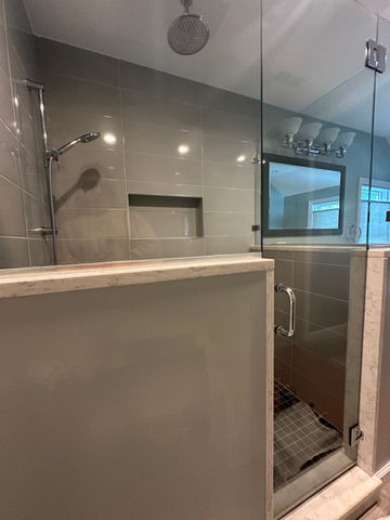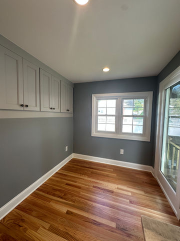As part of this kitchen remodel, we also added skylights in the dining room to bring in more natural light, painted the entire first floor of the home, refinished the existing hardwood floors, and rebuilt the primary shower after uncovering a water issue during the project. Addressing these kinds of details—planned and unplanned—is an important part of how we approach whole-home renovations.