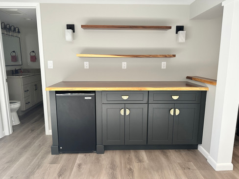 In the basement, the original bar took up more space than the homeowners truly needed. It was built so you could walk behind it, which limited traffic flow and made the room feel smaller.